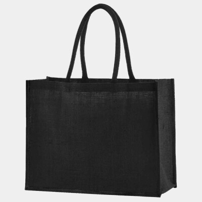 Unlaminated starched jute. Cotton carry handles (55cm long). Cut out label. Capacity 21 litres.